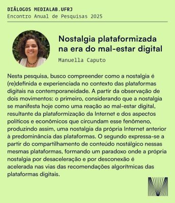 O Diálogos MediaLab.UFRJ será realizado presencialmente na ECO-UFRJ. Não haverá transmissão online. As inscrições permanecem abertas e podem ser feitas no site do laboratório.