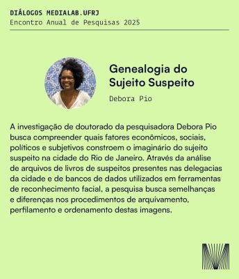 A mesa Tecnopolíticas, que abre o evento das 10h às 12h, reúne as apresentações de Débora Pio, Laís Sebben, Anna Bentes, Paulo Faltay e Paula Cardoso. Na sequência, Bruno Cardoso e Paulo Victor Melo comentarão as pesquisas.