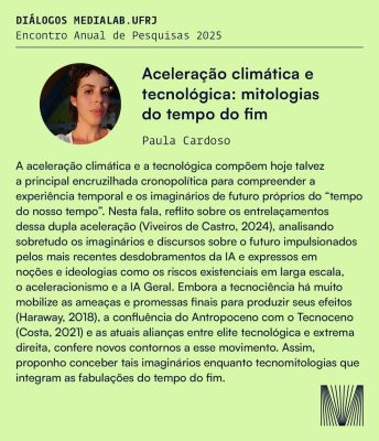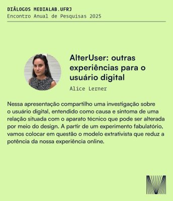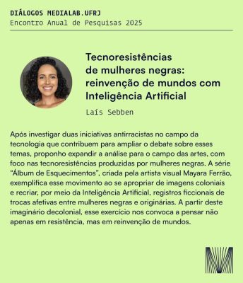 O MediaLab.UFRJ realiza, na próxima sexta-feira (12/12), o Diálogos, encontro que reúne pesquisadoras e pesquisadores para debater os principais eixos de investigação do laboratório. A programação será estruturada em duas mesas temáticas: Tecnopolíticas e Subjetividades.